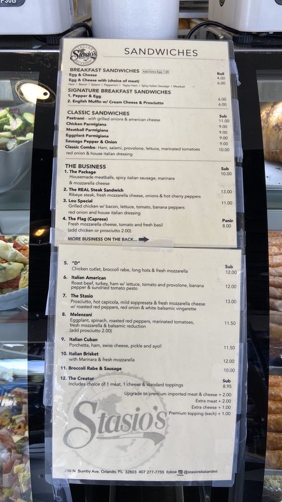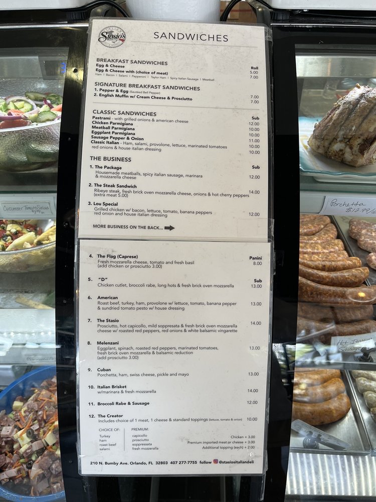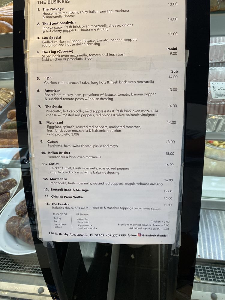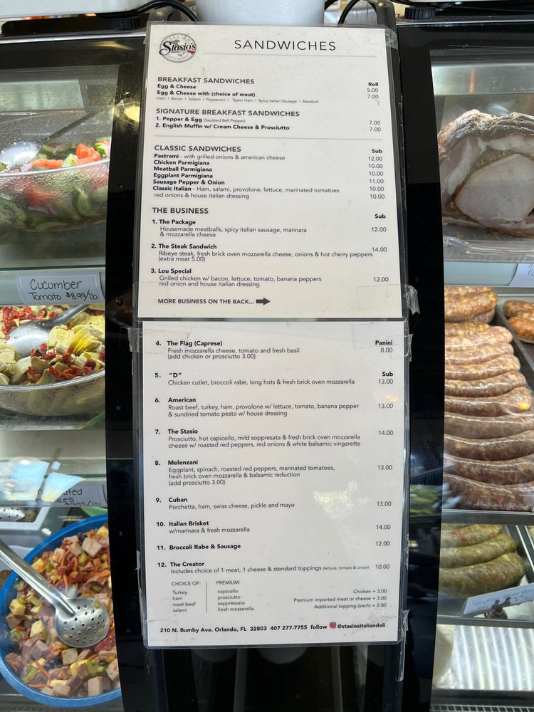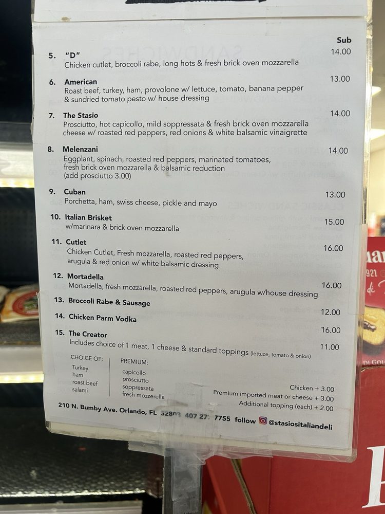 Stasio's Italian Deli & Market in Orlando, FL offers a trendy, casual dining experience with vegan options and accessible parking. This deli is praised for its authentic Italian dishes, including the chicken parm vodka sub and meatball sub, which have left customers raving. The atmosphere is fast-casual with a deli and small Italian market, creating a cozy setting to enjoy your food. The service is welcoming, informative, and exudes friendly family vibes. Customers love the variety of sandwiches, pizzas, salads, and pastries offered, with standout items like the pizza of the day, American sandwich, and lemon pastry receiving high praise. Stasio's is a must-visit spot for those craving a genuine Italian deli experience with top-notch ingredients and flavors.